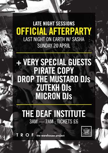 If you want to keep the party going…. the Official After Party for the Last Day On Earth event is it at The Deaf Institute, our sister venue, a 5 minute walk away up Oxford Road. Fully licensed.