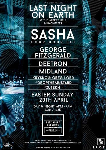 The next Warehouse Project & Trof Late Night Sessions Event, Last Night on Earth, featuring the legendary DJ, Sasha with an epic 4 hour Set.