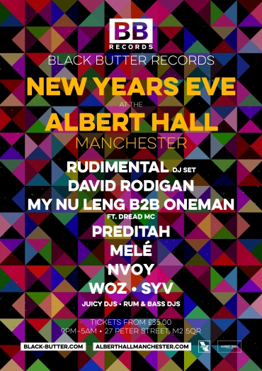 The Albert Hall counts down to the new year with a lineup courtesy of Black Butter Records. New Years Eve at The Albert Hall features an all-star line-up of some of the UK’s most exciting DJs, courtesy of Rudimental, David Rodigan, Preditah and a special back-to-back set from My Nu Leng and Oneman and much more.