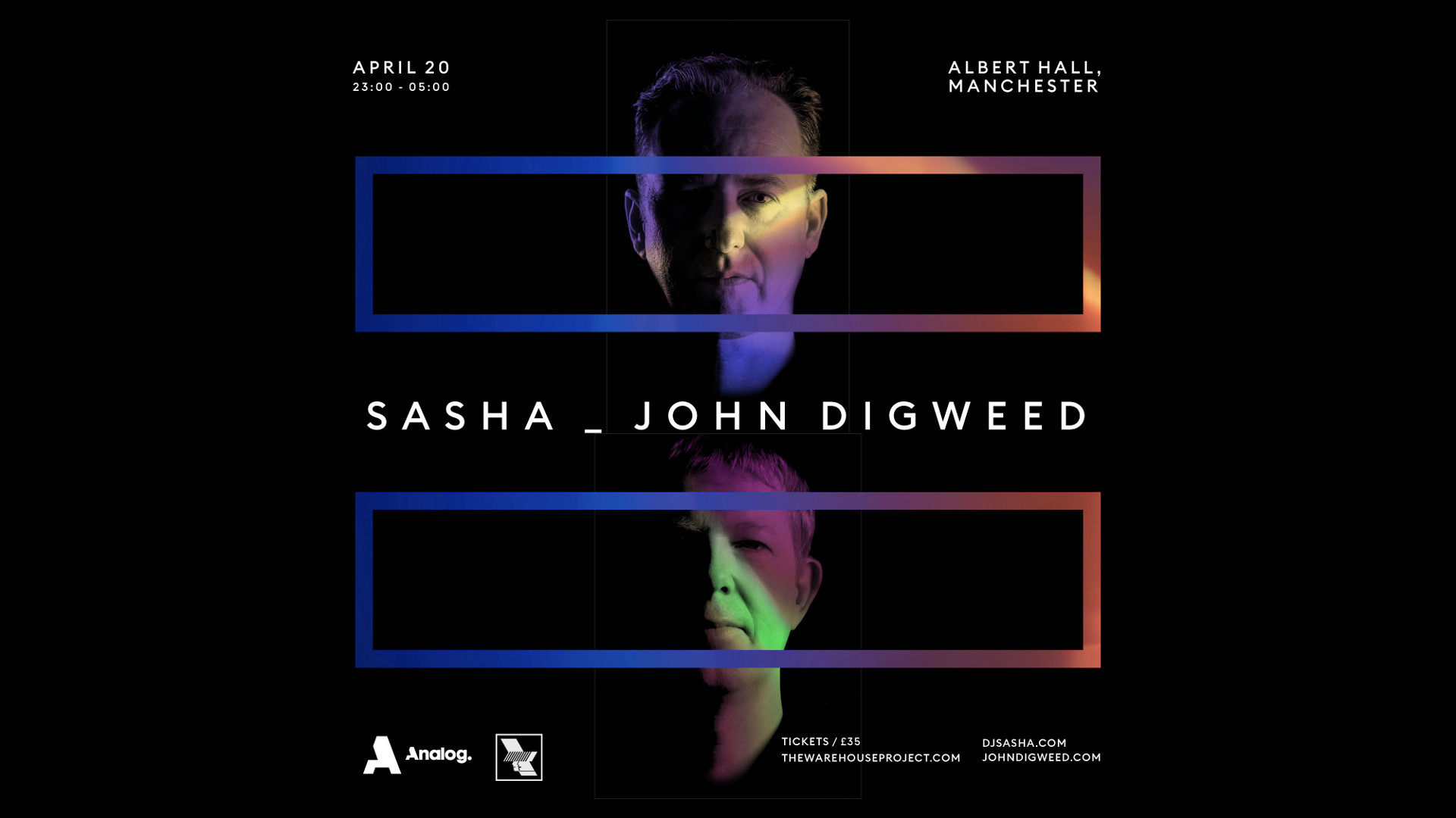Our kid Sasha is back this Easter Sunday, teaming up with fellow legend and compatriot John Digweed and The Warehouse Project for a very special one-off b2b show at the Albert Hall!